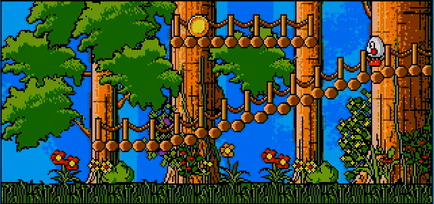 The thing is, the platforming is simple even with the rolling gimmick taken into consideration and the hazards are sparse, slow moving and predictable. It's actually pretty dull. A genuinely difficult game can be many things; exciting, thrilling, or on the other hand, frustrating and stressful. ‘Boring’ is not usually a word I'd use for a hard game but here we are. Most of Treasure Island Dizzy’s deaths are primarily the result of beginner’s traps; off-screen hazards and trial and error puzzles that kill you if you do a step wrong. As long as you remember the locations of these traps and don't zone out from boredom as a result of the excessive backtracking you have to do throughout the game, every hazard is very easily avoided. However, since death is sudden, you only have one life and all it takes to lose all progress in an instant is falling asleep at the wheel and forgetting that there's an off screen cage that will drop down on you and result in an immediate game over if you step on a specific unmarked section of a platform, I still found myself zoning out and bumbling into instant death traps I knew better than to fall for.