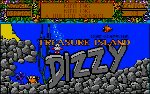 Now, this isn't my first time playing a Dizzy game. Several years ago I played and completed Fantasy World Dizzy on Amiga and remember quite enjoying it, some frustration aside. Treasure Island Dizzy however? I hadn't played this one until now and… wow, this game is irritating. I’m glad I know the series gets better first-hand. Although this is the second game in the Dizzy series, it’s the first game in the series to be released on Amiga, so we’re starting here.