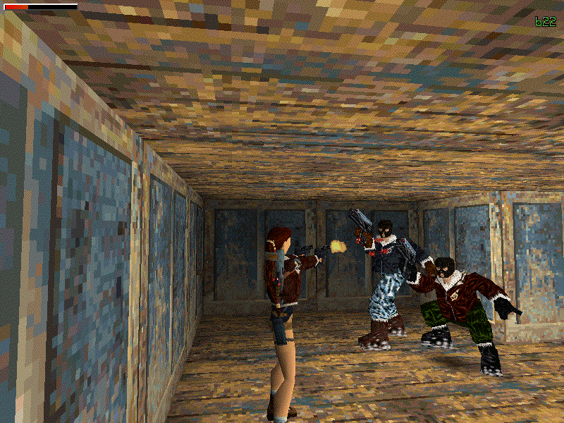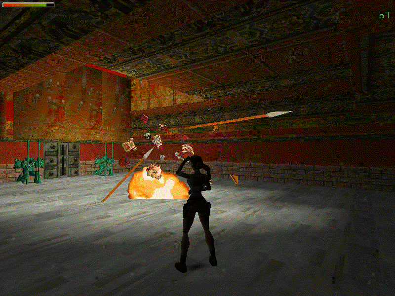 Lara is still equipped with the mainstay dual pistols, shotgun and uzis of Tomb Raider I, however the magnum has been replaced by the automatic pistols, which frankly are just reskins of the magnums anyway so don't worry about it. In addition to those four, you now also have the M16, a much beefier and more powerful rapid fire weapon than the uzis, although one that Lara can only fire at a standstill. Even more powerful is the grenade launcher, an explosive heavy damage dealer that is even capable of gibbing enemies. The scarce ammo for these latter two guns however will result in you not getting much chance to use them until very late in the game, so they're more or less filling the role that the shotgun, uzis and magnums filled in Tomb Raider I. Those three guns used to have too little ammo available to justify using in the early game in Tomb Raider I, but that's not as severe an issue in II anymore.![]()