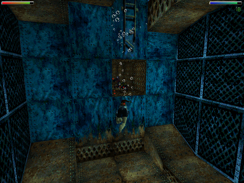 The only gun that kind of sucks is the harpoon gun. It's slow, hard to aim, inaccurate, needs to be reloaded, does poor damage and gets extremely limited ammo in spite of its weakness. The only reason you'll be using it? It's the only weapon that you can fire underwater, and Tomb Raider II has introduced quite a few more underwater enemies, with the scuba divers being the absolute worst to deal with. In general, water tends to make combat all around more frustrating. It’s common to swim through a lengthy underwater tunnel, only to surface at the other end and find that three armed goons are already firing at you relentlessly before you’ve even had a chance to start trying to climb up onto the surface so you can fight back, with the action of climbing also having a fairly lengthy animation that gives your enemies even more of a chance to get free shots in and turn you to swiss cheese before you’re even on dry land.