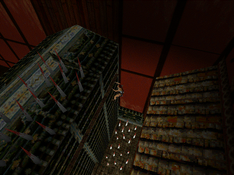 Something worth noting about Tomb Raider II’s difficulty escalation is how saving was handled in the PS1 version. The PC versions of all classic Tomb Raider games allow you to save anywhere, at any time, as many times as you like. No matter where you are, just bring up the save menu and now your current position is snapshotted for you to return to whenever you want. The console versions did things a bit differently however. Tomb Raider I on PS1 and Saturn limited how and where you were allowed to save, through the usage of save crystals, an item found placed throughout levels that allows you to save your game when touched. Save Crystals are consumed when used, thus limiting how often you can save as well as where you can save. As Tomb Raider I came out on consoles before it made it to PCs, it's clear that initially the game was designed around the limited save system, with the difficulty balanced appropriately. Tomb Raider II meanwhile, both on console and on PC, allows you to save absolutely anywhere as many times as you want, and it's clear that the game is now designed with the expectation that the player is likely to save before trying anything dangerous. As a result, do-or-die deathtraps and hectic enemy ambushes are far more common. It's harder, but at least in the case of the PS1 version, much less punishing. It’s thanks to this system that the springboard segments are manageable.